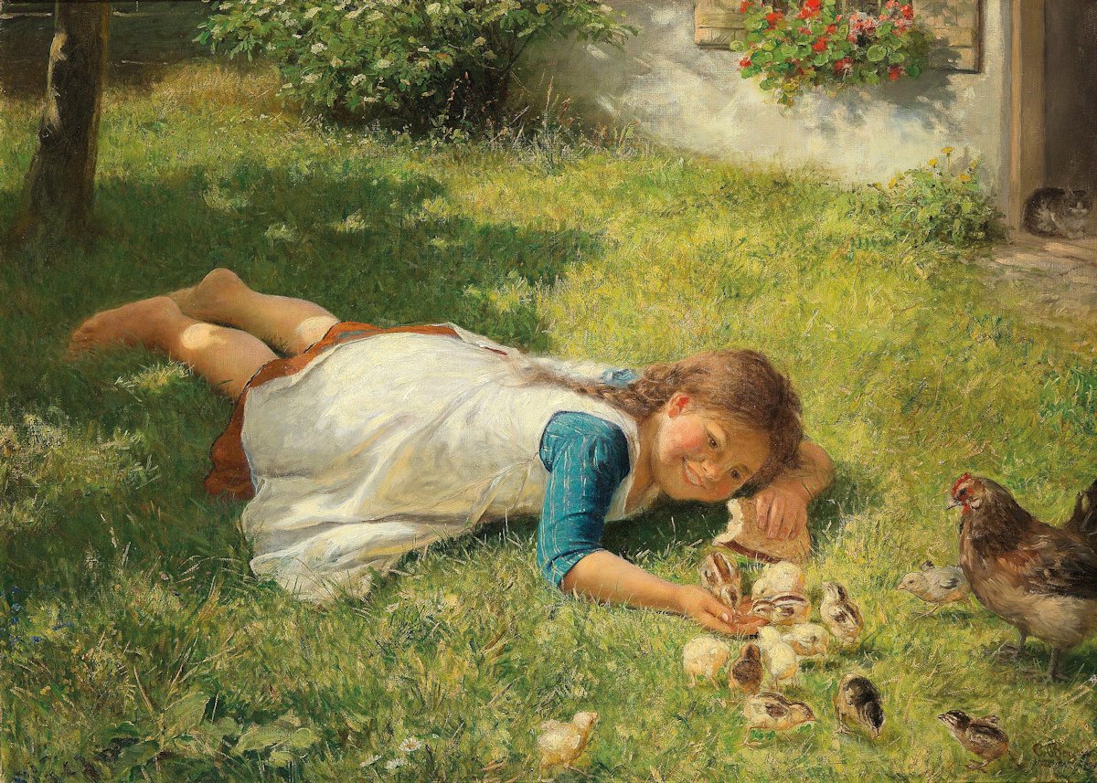 1912 | 59 años Jugando con los pollitos Óleo sobre lienzo. Colección particular 78.5 x 110 cm. |