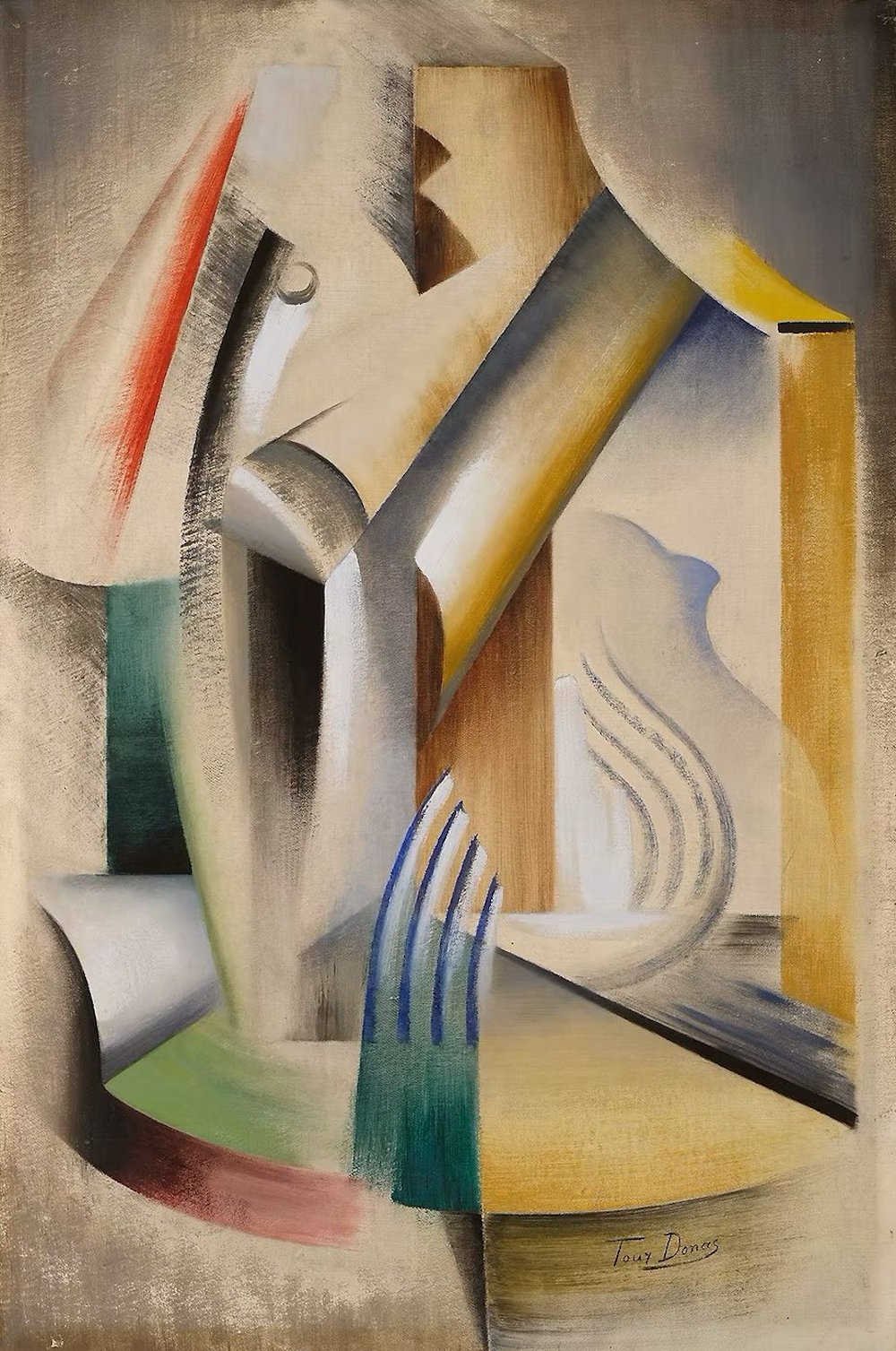 Biografía: Pintora cubista belga nacida en Amberes, en una familia burguesa francófona. Con 17 años se matriculó en la Koninklijke Academie voor Schone Kunsten de su ciudad natal, a pesar de no contar con el permiso paterno. Al estallar la I Guerra Mundial, con la invasión alemana de Bélgica en 1914, tuvo que huir con su familia a los Países Bajos. Más tarde viajó a Dublín para instalarse con una de sus hermanas, donde perfeccionó su formación en las artes aplicadas, trabajando con la técnica de las vidrieras dentro la cooperativa irlandesa An Túr Gloine. En 1916, con el Alzamiento de Pascua frente a la autoridad del Reino Unido, Marthe Donas se vio obligada de nuevo a emigrar, instalándose en el barrio parisino de Montparnasse. Comenzó asistir a clases en la Académie de la Grande Chaumière y en la Academia del pintor postimpresionista francés Paul Ranson, unos de los miembros fundadores del grupo de los Nabis. En 1917 descubrió el movimiento cubista gracias a una exposición del pintor francés André Lhote y quedó tan impresionada que se convirtió en su discípula inmediatamente. Ese mismo año conoció en Niza al escultor ucraniano Alexander Archipenko y a raíz de su influencia, Marthe Donas se entregó al cubismo sintético, experimentando también con el collage e incorporando a sus cuadros texturas matéricas con cemento o arenas. Fue en esta época cuando decidió firmar sus cuadros con el pseudónimo andrógino de “Tour Donas”, para evitar que su trabajo fuera identificado con el de una mujer. Con este nombre participó en varias exposiciones del grupo de la Section d’Or en París, Bruselas, Ginebra y Roma. Su primera exposición individual tuvo lugar en la Galerie Kundig de Ginebra en 1919 y al año siguiente celebró otra en la prestigiosa Der Sturm, fundada en Berlín por el artista y promotor alemán Herwarth Walden. Bajo la influencia de su amigo Teo Van Doesburg y de Piet Mondrian, sus inquietudes pictóricas se radicalizaron hacia la abstracción, a través de las formas puras geométricas y los colores planos. Tras contraer matrimonio con el filósofo belga Henri Franke, regresó en 1923 a su país de origen donde se establecieron permanentemente. Allí decidió abandonar la pintura durante más de 20 años, tras los cuales retomó su actividad artística. Al final de su vida consiguió cierto reconocimiento de su trabajo. Murió a los 81 años en 1967. En el año 2003 fue creada la Fundación Marthe Donas en Ittre con el objetivo de promocionar y preservar su obra. © Diana Larrea Web Recomendada: www.marthedonas.be |