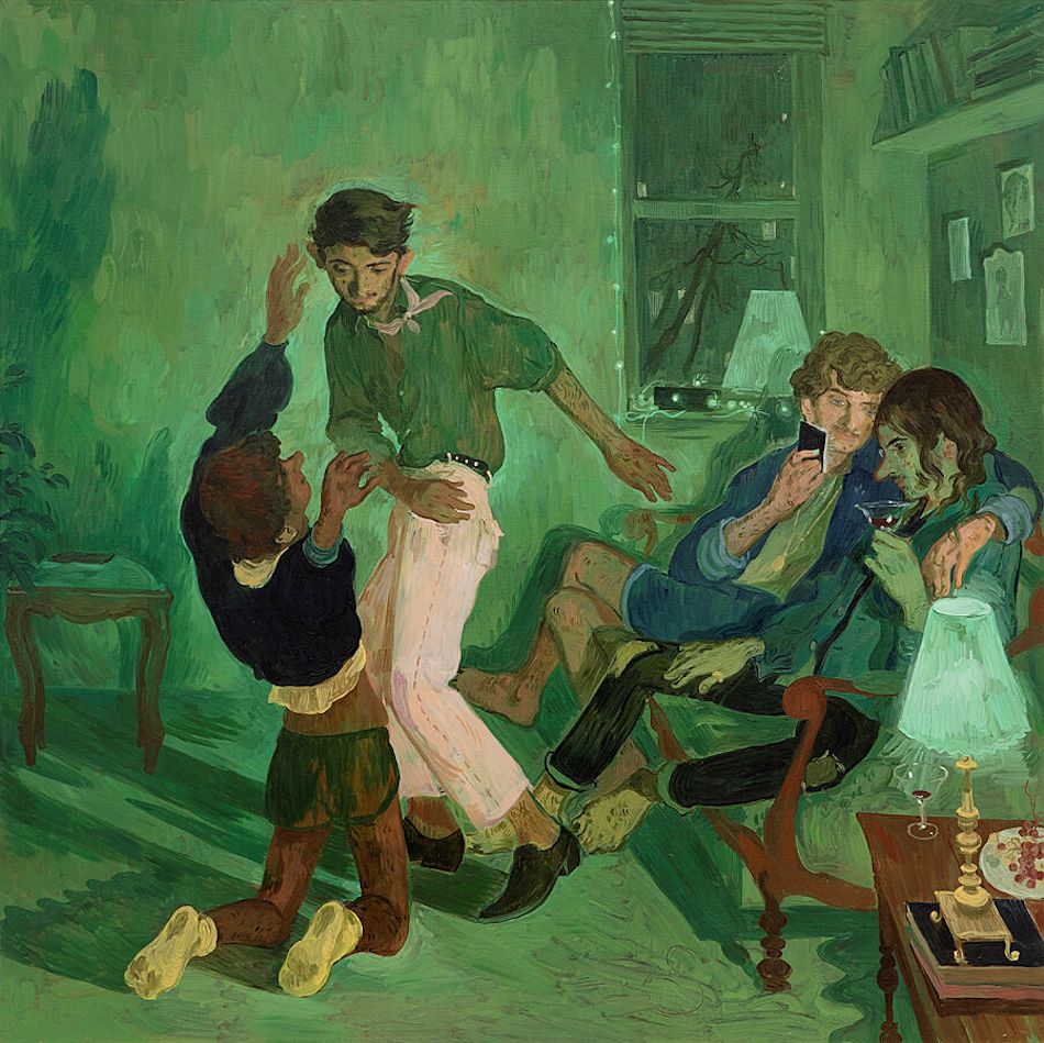 2019 | 36 años Cuatro amigos Óleo sobre madera contrachapada. Colección particular 101.6 × 101.6 cm. |