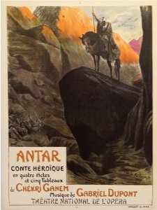 ![]() 1910 La maison du souvenir ![]() ![]() ![]() ![]() T.O.: Antar (1921 - 14 de Marzo) Compositor: Gabriel Dupont Libreto: Chekri Ganem Estreno: Opera de París Biografía: Compositor francés, una de las grandes promesas de la música francesa de su tiempo. Alumno de Widor y Massenet en el Conservatorio, en 1901 se hizo acreedor del 2º Gran Premio de Roma. Talento hipersensible, Dupont obtuvo sus mayores logros en el intimismo del piano (‘Feuillets d´Album’, 1905; ‘La Maison dans les Dunes’, 1910), aunque también ambicionó el prestigio público de la escena, escribiendo cuatro óperas, entre las que destacan ‘La Farce du Cuvier’ (1912) y, sobre todo, ‘Antar’ (1913, estrenada en 1921). Una grave enfermedad acabó con su vida a los 36 años de edad. Dupont, que en vida pasaba por ser uno de los músicos clave de su generación, con un prestigio muy superior al de figuras como Debussy o Ravel, no ha soportado la prueba del tiempo, y su música, apenas difundida, permanece en el relativo anonimato de las obras de segundo orden. © José Antonio Bielsa |