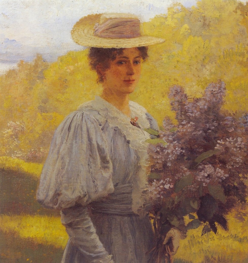 Señora joven con lilas