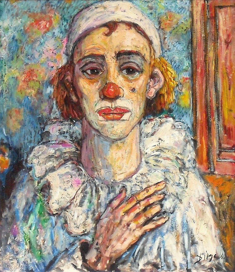 1975 | 55 años Ernesto el payaso Óleo sobre lienzo. Colección particular 27.5 x 31.5 cm. |