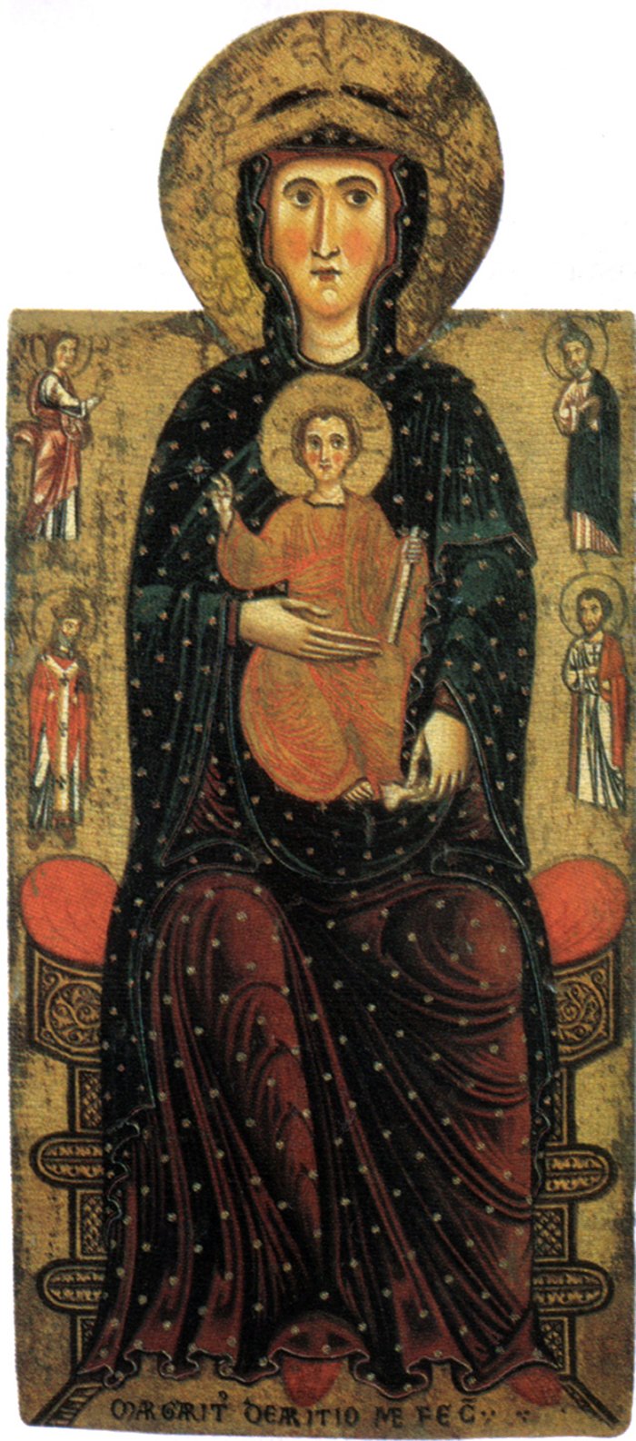1250 | 38 años Virgen con el niño Tabla. Museo Statale d'Arte Medievale e Moderna. Arezzo 57 x 127 cm. |