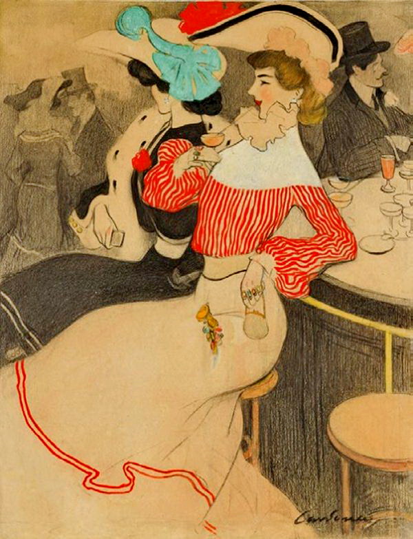 1905 | 28 años Au bar Carbón, cera, acuarela y guache sobre papel. Colección particular 45 x 35 cm. |