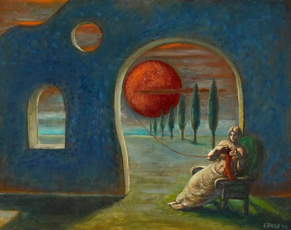 Biografía: Pintor surrealista alemán nacido en Altona, cerca de Hamburgo, padre del célebre escritor Michael Ende. Aunque en los años 30 sus pinturas atrajeron la atención internacional, fueron condenadas como degeneradas por el gobierno nazi y en 1936 se le prohibió exponer y pintar sus obras. Se considera que sus lienzos tuvieron una gran influencia sobre la escritura de su hijo. Por ejemplo, en las escenas sacadas de un sueño de su obra La historia interminable, y se hicieron también explícitas en el libro El espejo en el espejo, que es una colección de historias cortas basadas en las obras surrealistas de su padre, que se imprimieron junto al texto. En las obras de Edgar Ende, independientemente de lo fantástico y lo poético, también queda reflejada la muerte, el pavor, la soledad y plasman perfectamente la época que le tocó vivir. Sus imágenes son rígidas, no se mueven, tienen una claridad meridiana, a veces parece que las mira a través de unos prismáticos, pero al revés. Te sumergen en un mundo de ensueño que roza la pesadilla pero algo en su pintura salva del terror, uno se encuentra ante el misterio desnudo en toda su crudeza. © Antoni Gelonch Web Recomendada: edgarende.de |