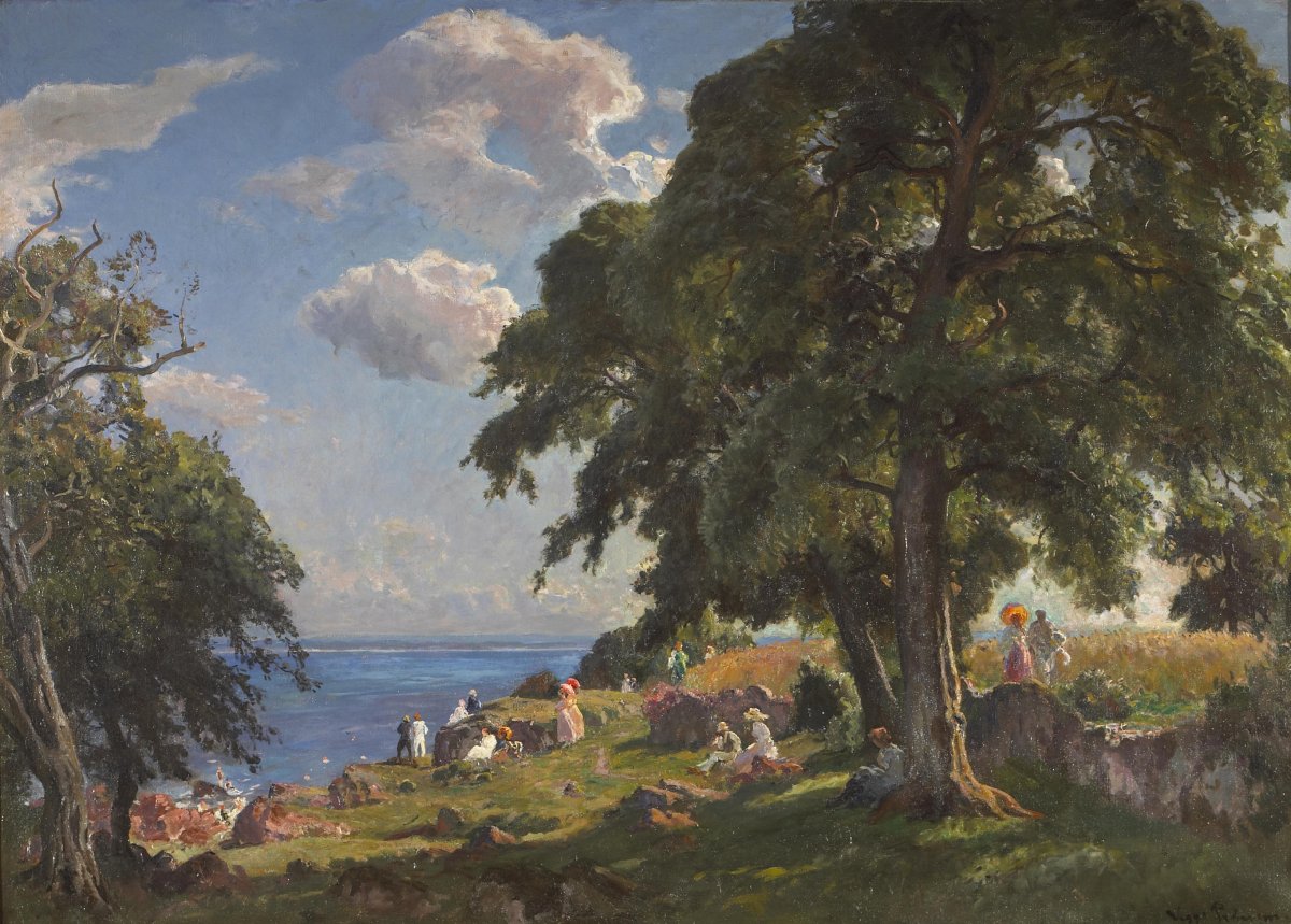 Biografía: Pintor danés nacido en Copenhague. Proveniente de una familia de artistas, de 1871 a 1878 asistió a la Real Academia Danesa de Bellas Artes. Su obra se vio influida decisivamente por el estrecho contacto con Peter Christian Skovgaard y Janus La Cour. Pedersen realizó trayectos de estudio y viajó por Europa antes de quedarse finalmente en Múnich durante algún tiempo. Pintó paisajes naturalistas y pinturas de figuras de colores brillantes. Sus obras se encuentran en los principales museos de arte de Copenhague, Estocolmo y Helsinki. © Artvee |