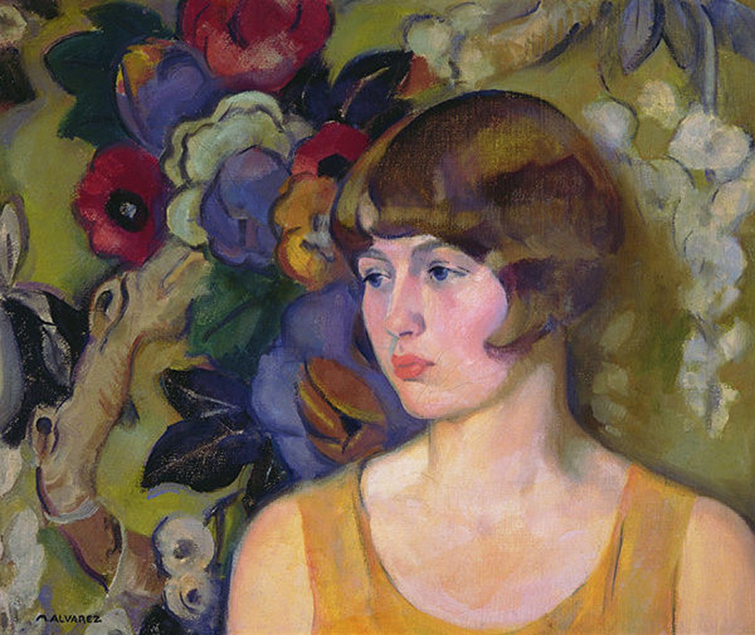 Biografía: Pintora y retratista estadounidense nacida en Oahu, Hawái. La naturaleza introspectiva de sus trabajos sitúa su obra bajo el paraguas de los movimientos impresionistas y modernistas californianos. Mabel formaba parte de una familia de emigrantes españoles que destacó en diversos campos de las ciencias. Era hija del médico e investigador español Luis F. Álvarez (1853-1937), un emigrante que se instaló en Hawái y dedicó su vida al tratamiento de la lepra. Su hermano mayor, el médico Walter C. Alvarez, se haría famoso por sus columnas diarias sobre salud familiar. Su sobrino Luis Walter Alvarez participó en el Proyecto Manhattan y ganó el Premio Nobel de Física en 1968. Mabel nació en el independiente Reino de Hawái, pero tras la anexión por parte de Estados Unidos la familia se mudó a Los Ángeles, California. Aunque demostró tener talento desde joven, comenzó a estudiar Arte a partir de 1915 con resultados notables. Fue autora de un gran mural para la Exposición Panamá-California que conmemoraba la apertura del Canal de Panamá, lo que le valió la Medalla de Oro. Recibió clases en la Escuela de Ilustración y Pintura de William Cahill y tuvo como maestro a John Hubbard Hill. Una de sus obras fue elegida como portada del catálogo de arte de la Escuela. Mabel continuó pintando toda su vida y realizando exposiciones con regularidad, a pesar de pasar sus últimos años en una residencia de ancianos. Finalmente, falleció sin descendencia a la edad de 93 años. © P.A.A.A. Web Recomendada: mabelalvarez.com |