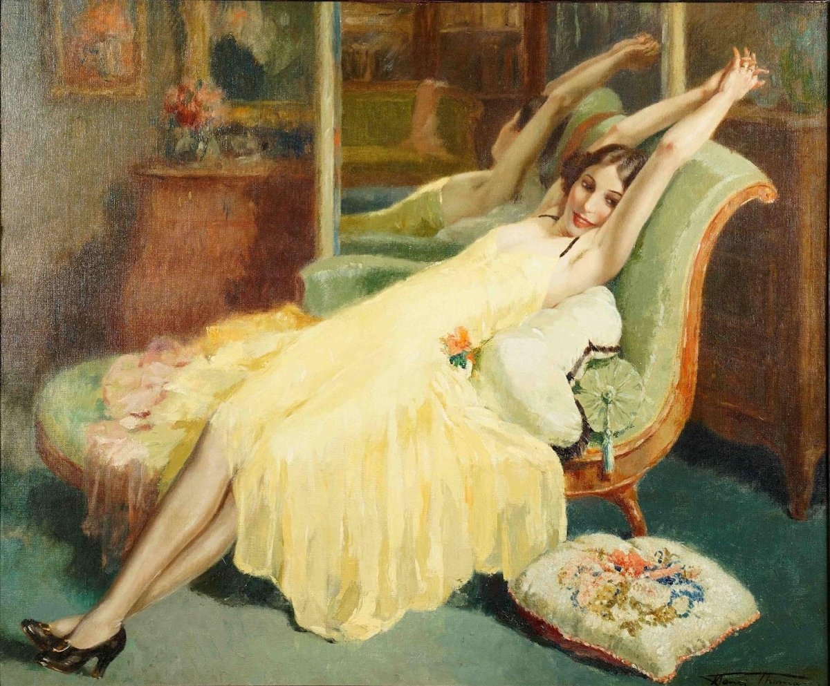 Biografía: Pintor, escultor y grabador belga de género nacido en Molenbeek-Saint-Jean. Estudió en la Académie Royale des Beaux-Arts de Bruselas desde 1895 hasta 1898 y posteriormente abrió un estudio en dicha ciudad, donde trabajó principalmente como ilustrador de libros. También se especializó en pinturas marinas, bodegones florales y retratos de damas elegantes. Finalmente, comenzó su carrera con la presentación de una obra en el concurso Godecharle en 1909. Sus exposiciones en la Belle Époque incluyen las del Cercle Artistique et Littéraire en Bruselas en 1906, 1909 y 1921, y en la Société Nationale des Beaux Arts en París en 1906 y 1910. Fue miembro de la Sociedad Labeur para artistas plásticos, que organizaba exposiciones anuales para sus miembros en el Museo de Arte Moderno de Bruselas. A menudo representaba escenas de la vida nocturna en bares y retratos de damas, con insinuaciones de decadencia, tentación, adulterio y prostitución en sus poses. En ese tipo de pintura fue seguidor del pintor y grabador belga Félicien Rops. Henri Thomas ilustró varios libros con sus dibujos y grabados. Murió en Bruselas el 22 de noviembre de 1972. © Gallerease |