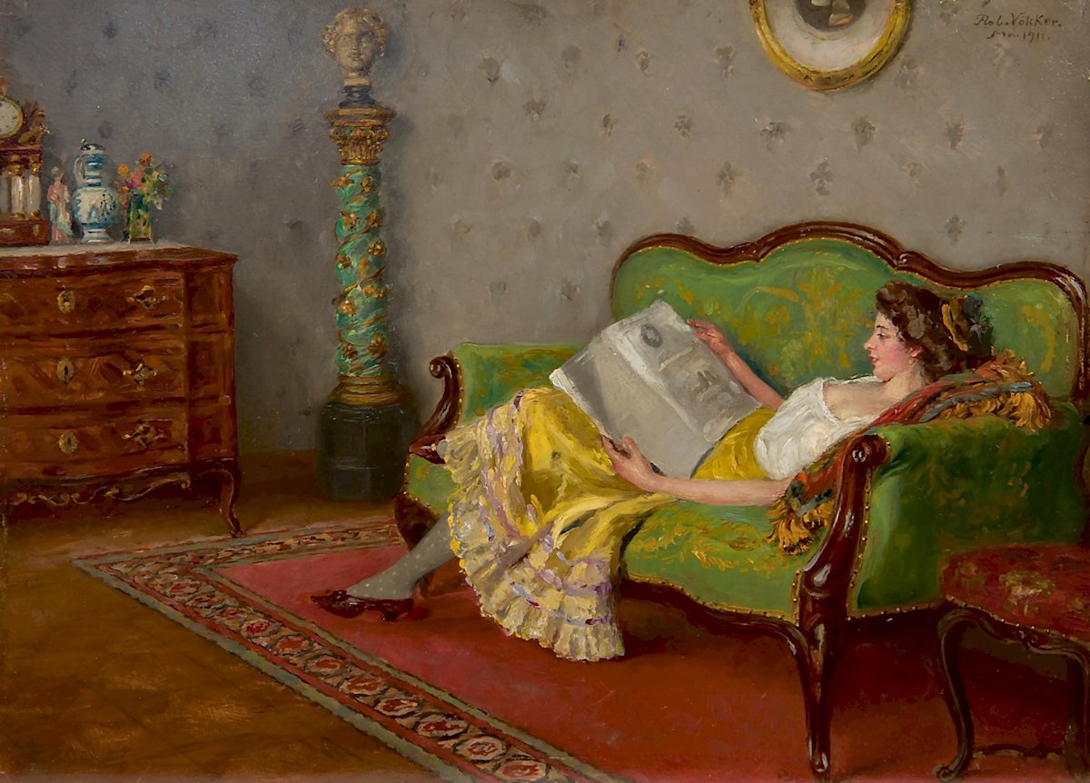 Biografía: Pintor alemán nacido en Dohna, cerca de Pirna, en Sajonia. Aprendió con Ferdinand Pauwels, un pintor histórico belga, en la Academia de Dresde y más tarde se trasladó a Múnich. En sus obras se aprecia un fuerte enfoque en la naturaleza, que a menudo son representaciones de personas y de mujeres y niños en particular. Sus escenas contienen una atmósfera romántica y, a menudo, parecen un ideal de la realidad. Robert Völcker murió en 1924. © Gallerease |