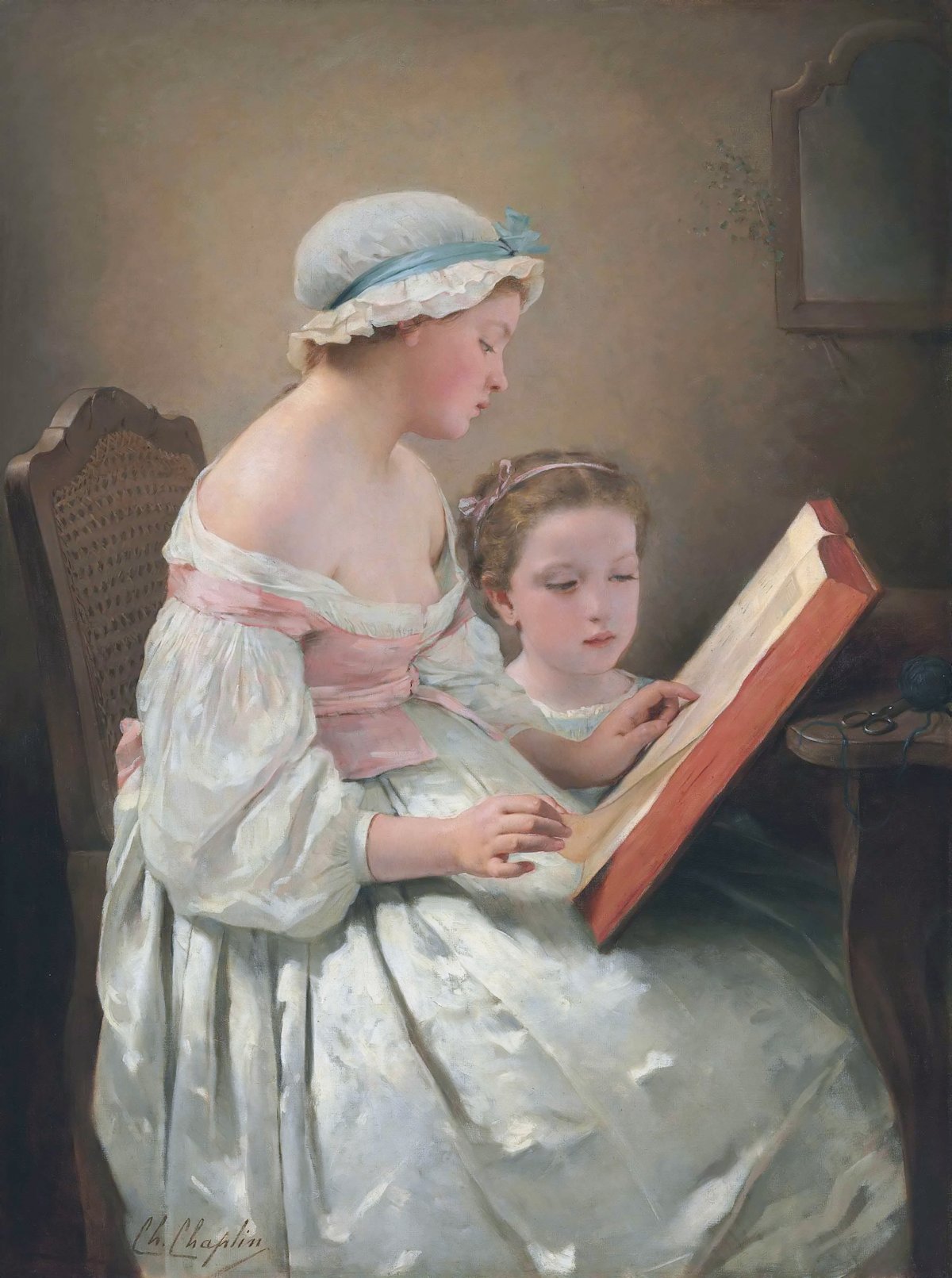 Biografía: Pintor, grabador y litógrafo francés nacido en Les Andelys, Alta Normandía. Estudió en la Escuela de Bellas Artes y fue alumno de Michel-Martin Drolling. Debutó en 1845 en el Salón de la Academia de Bellas Artes con un retrato de su madre. Ya entonces cristalizó su preferencia por los retratos de mujeres y niños, que más tarde le harían famoso. A partir de 1847 presentó regularmente obras para exposiciones, entre otras para la Royal Academy de Londres. Al principio de su carrera, también pintó numerosos estudios de flores, que se mostraron en el Salón de las Flores. Los paisajes, a menudo relacionados con el género campesino, completan su obra. Sin embargo, alcanzó una gran maestría con sus retratos de mujeres jóvenes, que aún hoy no han perdido nada de su fascinación. Sus cuadros muestran mujeres gráciles, pero también poses seductoras con los pechos parcialmente al descubierto. Entre sus grandes admiradoras se encontraba la emperatriz Eugenia, esposa de Napoleón III, y así Charles Chaplin se convirtió en uno de los artistas más populares de la familia imperial de Napoleón III. Cuando en 1859 el jurado del Salón de París rechazó su obra Aurora por escandalosa y el conde de Nieuwerkerke impuso una prohibición de exposición sobre el cuadro, Napoleón III levantó de nuevo esta prohibición. También fue un artista solicitado por el resto de la aristocracia y la alta sociedad, lo que aumentó aún más su fama. En privado, apoyó a las artistas femeninas e impartió clases de arte en su estudio específicamente para mujeres. Entre sus alumnas se encontraban Marie Helene Aarestrup, Louise Abbéma y Mary Cassatt. Las habilidades de Chaplin también se reflejaron claramente en sus grabados, que se caracterizan por unas líneas finas y una representación extremadamente precisa. A lo largo de su carrera, Charles Chaplin recibió muchos honores y premios, entre ellos, el nombramiento como caballero en 1879 y el nombramiento como oficial de la Legión de Honor en 1881. © Cyranos |