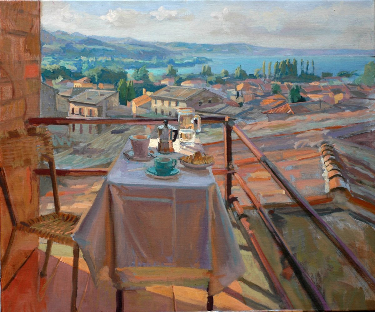 2000 | 36 años Desayuno con vistas Óleo sobre lienzo. Colección particular 75 x 90 cm. |