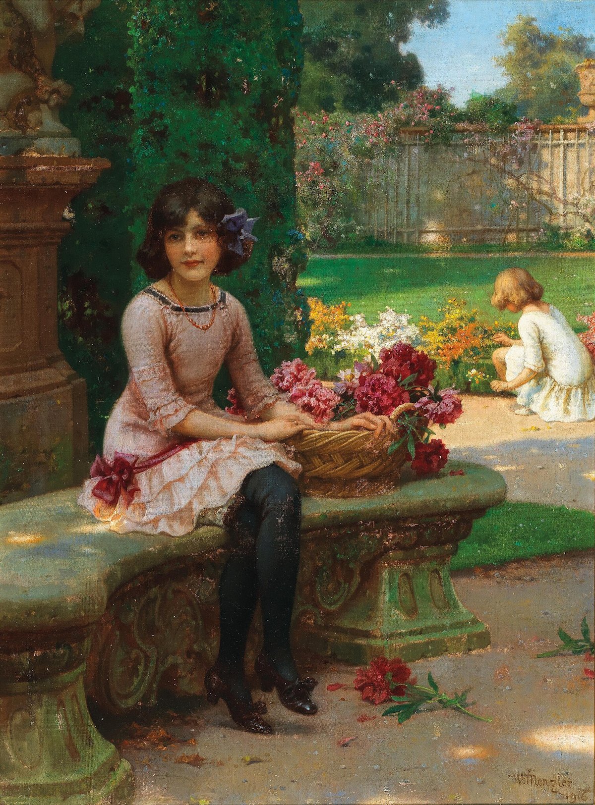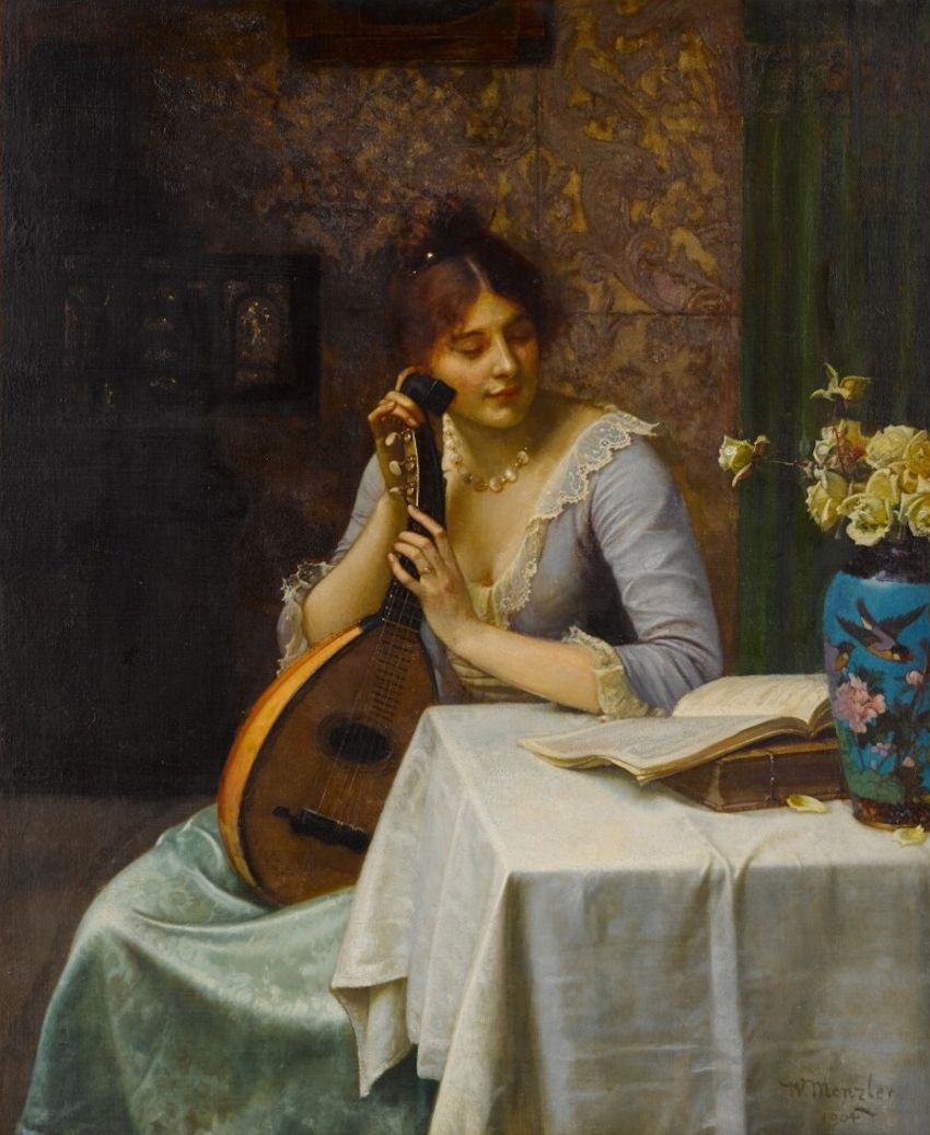 Biografía: Pintor alemán de retratos, escenas de género y flores nacido en Kassel, en el norte de Alemania. Estudió en Múnich y, a partir de 1891, expuso en Viena. Las obras de Menzler se pueden encontrar en museos y galerías de Budapest y de Sídney. Murió en Múnich en 1926. © Hayne Fine Art |