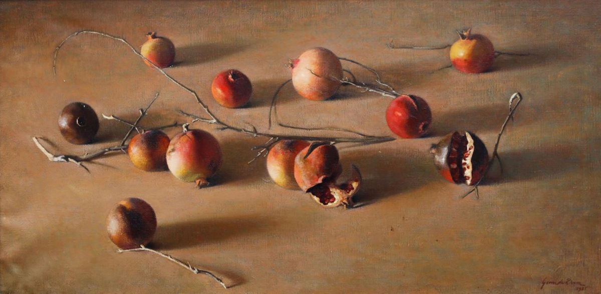1985 | 39 años Las granadas Óleo sobre lienzo. Colección particular 50 x 100 cm. |