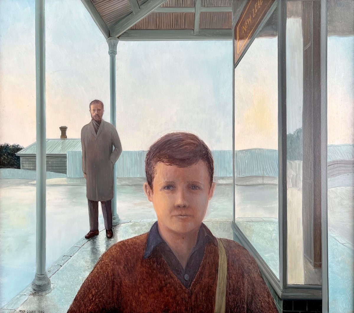 1980 | 45 años Hombre y muchacho Óleo sobre tabla. Colección particular 33 x 37.3 cm.  |