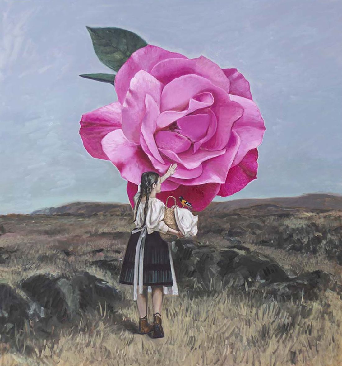 2014 | 32 años Éxtasis de la mujer que descubrió que era una rosa Óleo sobre lienzo. Colección particular 150 x 130 cm.  |