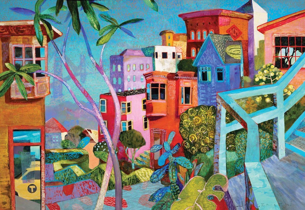 Biografía: Pintor canadiense nacido en Tofino, aunque se crio en Nanaimo, Columbia Británica. Después de graduarse en el Instituto de Arte y Diseño Emily Carr a principios de los años 70, pasó un tiempo viajando por Europa, donde la influencia del paisaje toscano es evidente en sus obras de arte. Durante los siguientes treinta años, Jorgensen trabajó en todo tipo de oficios, desde dirigir una tienda de plantas tropicales hasta ser dueño de un restaurante y pintar fuera de horario. En el camino, recibió apoyo y orientación de sus compañeros artistas del centro de la isla, Grant Leier y Nixie Barton. Leier le ofreció aliento y puso a Jorgensen en contacto con la West End Gallery, que vendió las tres primeras pinturas que llevó a su galería de Victoria en una semana. Desde entonces Jorgensen se dedica a pintar a tiempo completo, considerándose un "éxito de la noche a la mañana que llevó 55 años". Los coleccionistas aprecian la frescura de sus obras de arte por su combinación de fantasía y color. © West End Gallery |