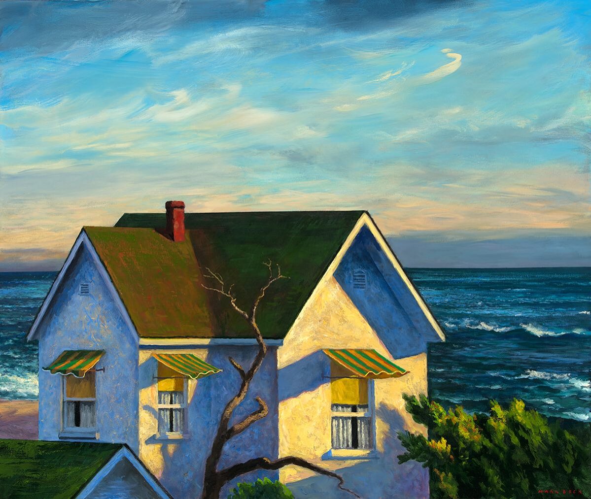 Biografía: Artista estadounidense nacido en Las Cruces, Nuevo México, considerado uno de los mejores pintores realistas y paisajísticos del país. Estudió en la Escuela de Arte de Portland en Maine y durante cuatro años trabajó enseñando a pintar a los reclusos en la prisión de máxima seguridad The California Men's Colony, en San Luis Obispo. Con una visión única y una carrera de décadas, es conocido por sus imágenes icónicas y audaces del paisaje estadounidense. Sus pinturas además pueden verse en películas, campañas publicitarias internacionales y portadas de revistas, y sus obras de arte se encuentran actualmente en algunas de las colecciones de arte más prestigiosas del mundo. Las pinturas de Mark Beck son ricas en tradición artística y a menudo se basan en el género del paisaje para revelar su narrativa. Un hilo conductor en muchas de sus pinturas es la inclusión de estructuras pequeñas y simples a menudo yuxtapuestas a la belleza, y a veces la furia, del mar. Describe sus pinturas como representaciones de sus ideas y pensamientos sobre la experiencia estadounidense y, aunque la naturaleza ocupa un lugar destacado en su obra, su arte trata en gran medida de la interacción humana con el mundo natural. La obra de Beck está inspirada en las hermosas obras de la Escuela de pintores del río Hudson y también en las visiones más sobrias de la vida estadounidense presentadas en las obras de los artistas Edward Hopper y Ben Shahn. © Tutt Art Web Recomendada: www.markbeckpaintings.com |