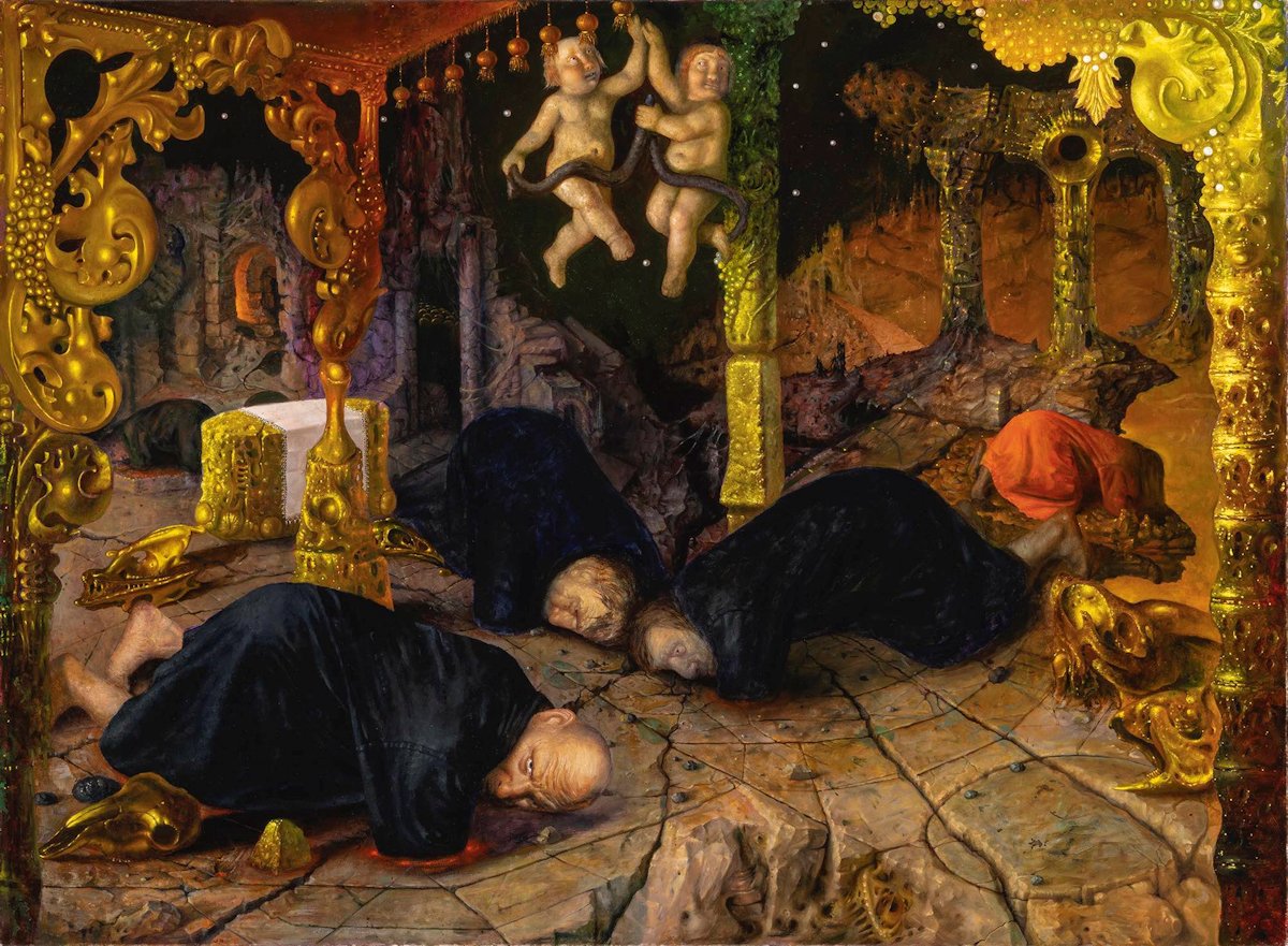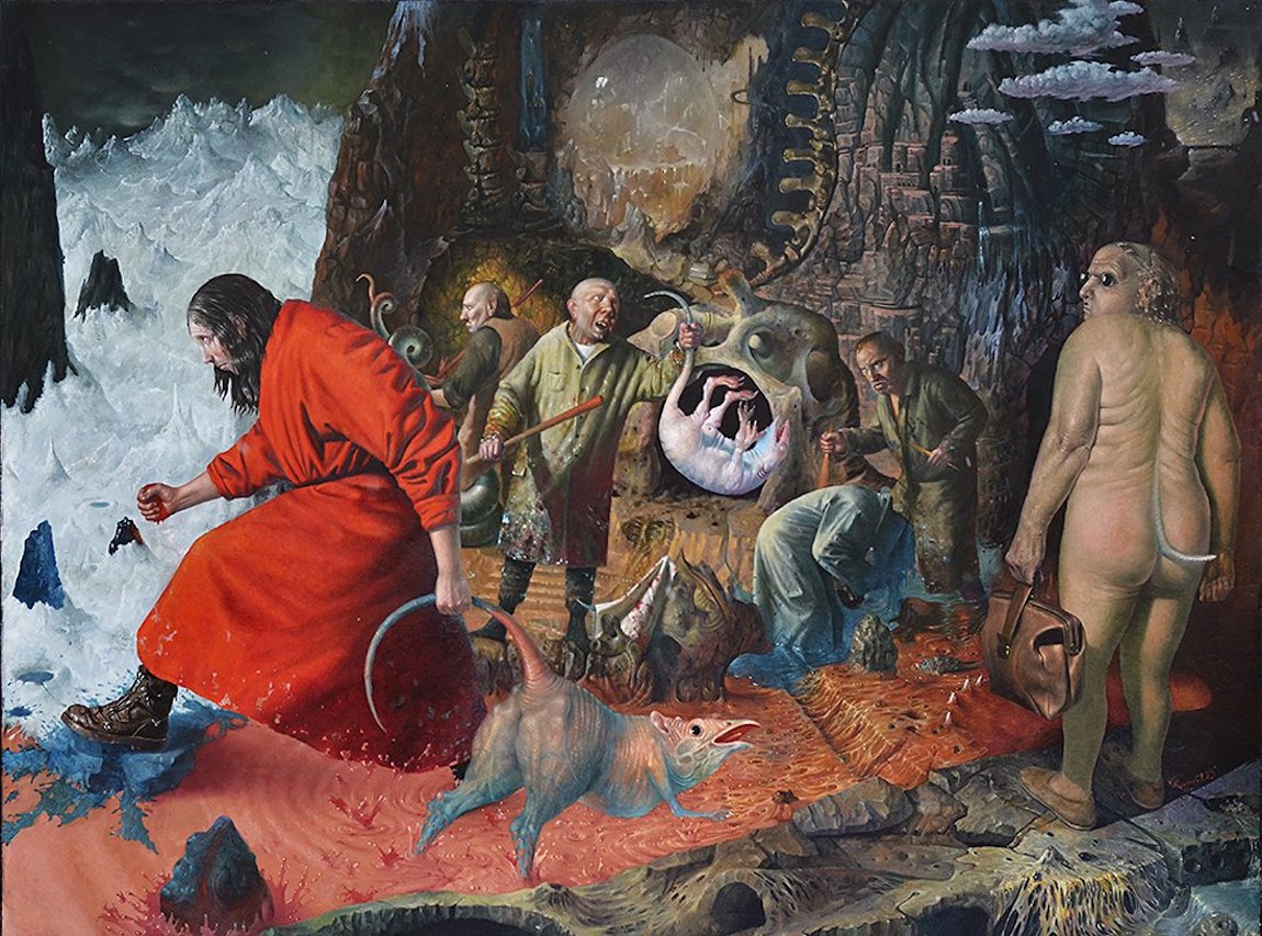 Biografía: Pintor lituano nacido en Panevėzys. Padre del también pintor Nojus Petrauskas (1990), en 1981 adquirió la especialidad de relojero-grabador. Desde 1982 participó en exposiciones en Lituania y en el extranjero. Los mundos surrealistas, místicos, mágicos y míticos de la pintura se abren en la obra de Romualdas Petrauskas. Los habitantes de Panevėzys conocen bien a este autor, pues pocos son los que no han visto sus fabulosas fantasías al menos una vez. En Lituania y en el mundo, el artista es más conocido como autor de miniaturas, participando en numerosas exposiciones y concursos nacionales e internacionales, donde obtuvo importantes premios. Mientras tanto, en el contexto de la pintura lituana, el autor fue algo marginal y solo fue descubierto por los críticos de arte y los grandes coleccionistas después de su muerte. Su obra se puede dividir en dos grupos, composiciones surrealistas y retratos. Pero esta distinción es sólo específica del género, porque, como debemos tener en cuenta, los personajes y los detalles representados en ambas obras son algo similares, en sus gestos, tipo, estilo de pintura, se complementan entre sí. Los retratos a veces se convierten en estudios de personajes para futuras composiciones de múltiples figuras. © Aurelija Seilienė |