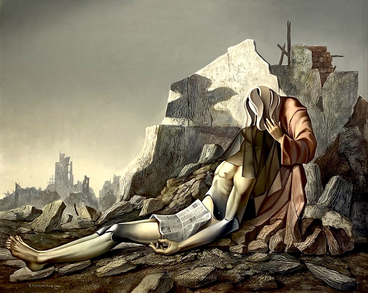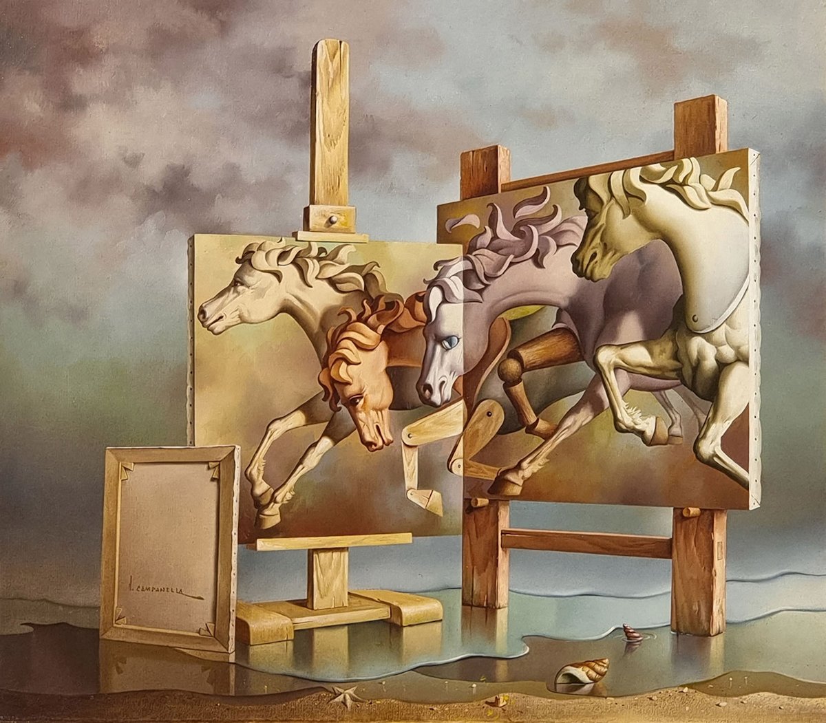 Biografía:  Pintor italiano nacido en Monopoli, Apulia, aunque residió en Argentina desde el año 1955. Está considerado como uno de los pintores surrealistas más destacados, con numerosas exposiciones en lugares tan emblemáticos como los Museos de Bellas Artes de Atenas, Galería de los Uffizzi de Florencia, de Arte Moderno de Tel Aviv, de Arte Moderno de Johannesburgo, de Bellas Artes de Mar del Plata y de Bellas Artes de Paraná, y multitud de galardones recibidos por su magnífica obra pictórica. En palabras del propio artista, sus maestros fueron Giorgio de Chirico y Salvador Dalí. Y respecto a que los críticos lo califican de surrealista, él consideraba que al principio en su obra imperó el impresionismo y más tarde el pop art, pero siempre bajo la influencia de una estética renacentista. Su gran variedad temática se debe a su imaginación desbordante y a su necesidad de plasmarla en los lienzos, ya que lo único que hizo es pintar, pintar de manera incansable. © Ignacio P.B.  |