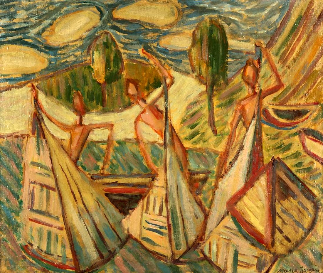 Biografía: Escultora, pintora, escenógrafa y diseñadora de vestuario polaca nacida en Staryi Sambir, hoy Ucrania. Estudió en la Academia de Bellas Artes de Cracovia con el escultor Xawery Dunikowski. Fue miembro del primer Grupo de Cracovia (1932-1937), fundado por los estudiantes izquierdistas de la Academia para promover el arte moderno en el difícil contexto de entreguerras. En 1957, junto con Tadeusz Kantor, cofundó el segundo Grupo de Cracovia, un centro seminal de la vanguardia en la Polonia comunista. Entre 1934 y 1939, diseñó vestuario y escenografía para el vanguardista Teatro de Artistas Cricot, fundado por su hermano Józef Jarema (1900-1974). Realizó varios viajes a París y visitó Italia en 1958. Fue una de las pocas artistas que se negaron a participar en la escena artística oficial, patrocinada por el Estado, durante el período del Realismo Socialista. Su extraordinaria inventiva, combinada con su visión creativa de la vanguardia clásica, constituyó uno de los fenómenos más interesantes del arte moderno polaco. A principios de la década de 1930, se aventuró en la escultura, explorando inicialmente un idioma figurativo animado por la deformación expresiva. Más tarde en la década, creó formas abstractas y orgánicas suscribiéndose a las preocupaciones del círculo de Abstracción-Creación. Fue analítica en su enfoque al desafío de representar el movimiento y el ritmo, y acentuó la interpenetración y fluidez de las formas, alejándose así de la noción de la escultura como un objeto volumétrico estático. Durante el mismo período también pintó gouaches pequeños e íntimos. Tras la II Guerra Mundial (1939-1945), se centró casi exclusivamente en la pintura, con solo retornos esporádicos a la escultura. Su brillante comprensión de las relaciones entre volúmenes y espacio, y su capacidad para integrar movimiento, luz y sonido, una capacidad arraigada en su experiencia en el teatro, la ayudaron a desarrollar un enfoque muy original de la pintura. Su encuentro con el surrealismo, que ya era evidente en sus obras del período de entreguerras, la animó a estudiar las relaciones entre formas abstractas y elementos figurativos, para combinar formas referenciales e imaginarias. A principios de la década de 1950, introdujo la técnica de la monotipia, conectada con la acuarela y el gouache, en su pintura, logrando una expresión estética muy original. Con el tiempo, sus iniciales alusiones legibles a la figura humana integrada con formas abstractas dieron paso a composiciones puramente abstractas. Su proclividad por los motivos de danza y su sensibilidad hacia la música, afinada por su colaboración anterior con el Cricot Theater of Artists, infundieron a sus pinturas y esculturas una calidad rítmica y musical. En 1958, representó a Polonia en la Bienal de Venecia. © Bárbara Ilkosz |