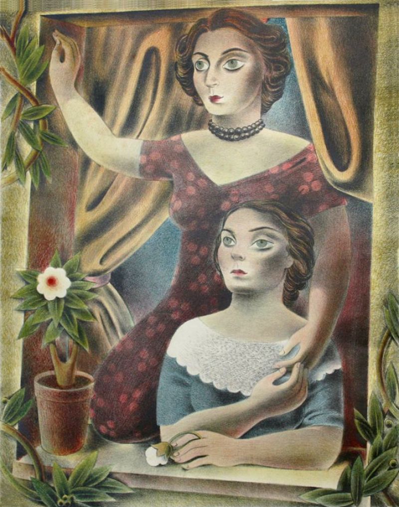 1936 | 35 años Mujeres en la ventana Litografía. Colección particular 66 x 51 cm. |