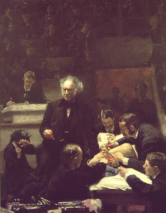 ![]() 1873 | 29 años John Biglin a Single Scull Óleo sobre lienzo. Yale University Art Gallery. New Haven 61.8 x 40.6 cm | ![]() 1875 | 31 años La clínica Gross Óleo sobre lienzo. Universidad Thomas Jefferson. Filadelfia 243.8 x 198.1 cm. |