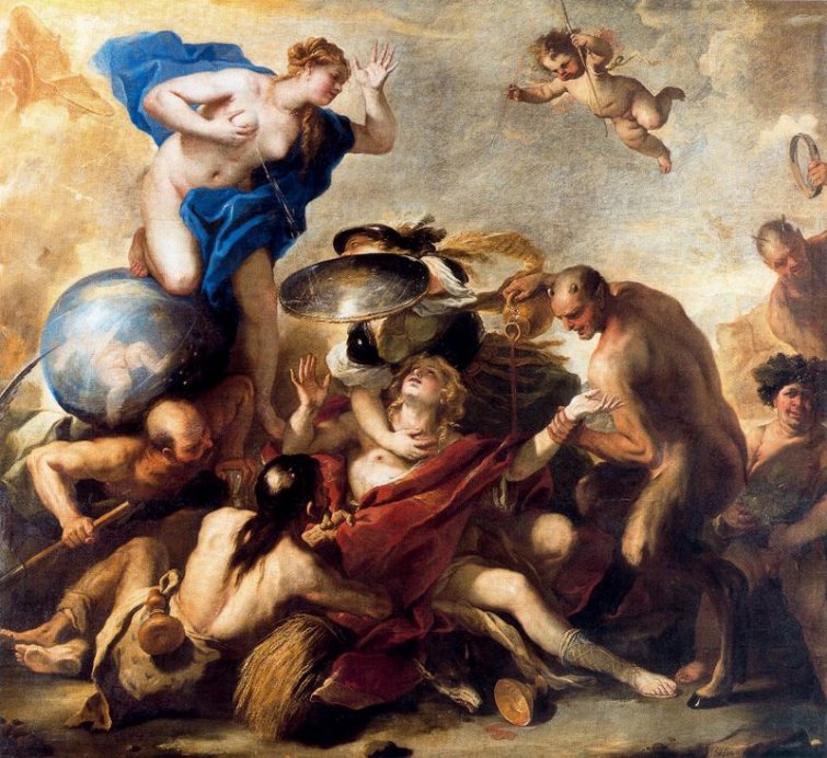 Biografía: Pintor barroco italiano nacido en Nápoles y conocido como Luca fa Presto (el Rápido) por la rapidez con que ejecutaba sus obras. Estudió con el pintor español José de Ribera, el Españoleto, y con el pintor y arquitecto italiano Pietro da Cortona, cuyo estilo junto con el de Paolo Veronese, influyó en el de Giordano. Vivió y trabajó principalmente en Nápoles, aunque también llevó a cabo importantes obras en Florencia. Entre 1692 y 1700 residió en Madrid, donde trabajó para Carlos II de España. Pintó numerosos cuadros, quizá unos 5.000, cuyas características principales son la armonía de los colores y el encanto y la facilidad de invención. Entre sus frescos están los de la cúpula de la capilla Corsini de Florencia, Cristo expulsando a los mercaderes del templo (iglesia de San Filippo da Girolami, Nápoles), la Batalla de San Quintín y la Prisión del de Memoranci (fresco de la escalera del monasterio de San Lorenzo de El Escorial, Madrid, España). Entre sus pinturas de caballete se incluyen Venus y Marte (Museo del Louvre, París, Francia) y el Nacimiento de san Juan Bautista (Museo Metropolitano de Arte, Nueva York, Estados Unidos). En el Museo del Prado (Madrid, España) hay una importante colección de su obra, como el Juicio de Salomón o Bethsabé en el baño. © M.E. |