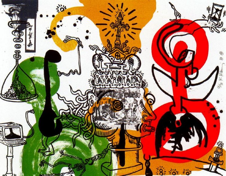 ![]() 1989 | 31 años El Rey Litografía. Colección particular 58.5 x 75.5 cm. | ![]() 1989 | 31 años Sin título Acrílico sobre lienzo. Galería Shafrazi. Nueva York |