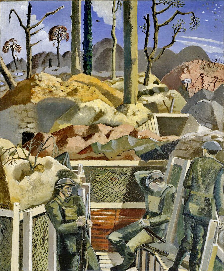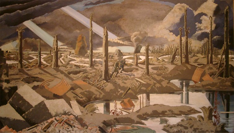 ![]() 1917 | 28 años Primavera en las trincheras, Ridge Wood Óleo sobre lienzo. Imperial War Museum. Londres 60.9 x 50.8 cm. | ![]() 1919 | 30 años El camino de Menin Óleo sobre lienzo. Imperial War Museum. Londres 182.9 x 317 cm. |