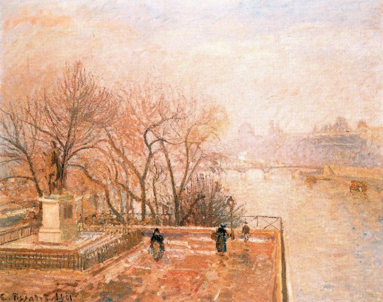 ![]() 1898 | 68 años Avenida de la Opera Óleo sobre lienzo. Colección particular. Nueva York 73 x 94 cm. | ![]() 1901 | 71 años El Louvre, mañana brumosa Óleo sobre lienzo. Colección Banco de la República. Bogotá 73 x 92 cm. |