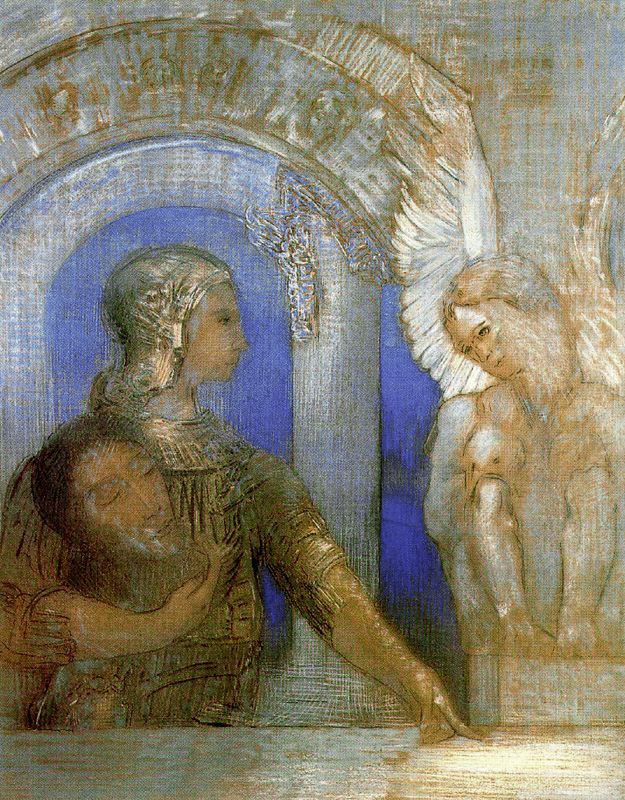 ![]() 1869 | 29 años El caballero místico Carboncillo. Museo de Bellas Artes. Burdeos 100 x 80 cm. | ![]() 1898 | 58 años Arï Redon Óleo sobre madera Art Institute of Chicago 44.8 x 30.8 cm. |