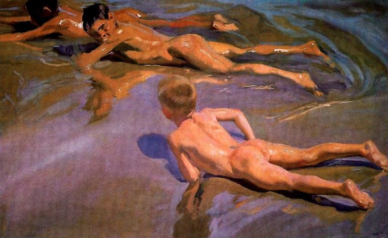 Biografía: Pintor español vinculado al impresionismo, del que hace una interpretación personal basada en el protagonismo absoluto de la luz y de la plasmación del movimiento de las figuras. Nació en Valencia el 28 de febrero de 1863. Inició su aprendizaje artístico en 1877 con el escultor Cayetano Capuz para después formarse en la Academia de Bellas Artes de San Carlos. Desde su juventud se interesó también por la pintura al aire libre (en plein air), con la que trataba de captar la luminosidad mediterránea, tanto en la huerta valenciana como en la playa, al igual que hacían por entonces los impresionistas franceses. Completó su educación en París y Roma y, tras volver a España en 1890, se afincó en Madrid, donde empezó una trayectoria profesional jalonada de éxitos, premios e importantes encargos: primera Medalla Nacional de Bellas Artes en 1892 y 1895, y el Gran Prix de la Exposición de París de 1900, entre otros muchos reconocimientos. Por estos años pintó obras de crítica social, como Y aún dicen que el pescado es caro (1894, Museo del Prado), que le otorgaron un cierto prestigio en Madrid y París. Su popularidad se extendió por toda Europa, realizando exposiciones en París (1906), Berlín y Colonia (1907) y Londres (1908), para después exhibir sus cuadros en varias ciudades de Estados Unidos. El éxito en Nueva York le proporcionó un importante encargo: la decoración de la sala principal de la Hispanic Society of America, presidida por Archer Milton Huntington, formada por catorce grandes paneles dedicados a representar las gentes y costumbres de las diversas regiones de España. Elegido académico de Bellas Artes de San Fernando en 1914, cayó gravemente enfermo en 1920 y murió el 10 de agosto de 1923. Artista de ingente producción, cuya pintura reflejó fielmente las circunstancias históricas y las contradicciones de un fin de siglo en crisis. Sus contactos con el mundo europeo le permitieron superar pronto valores y temáticas tradicionales para vincularse a los nuevos procesos de creación. La pintura en plein air de los impresionistas influye en su estilo, que, sin el interés científico de los franceses, puede considerarse como un realismo a plena luz. Relevante retratista, Aureliano de Beruete (1902, Museo del Prado, Casón del Buen Retiro). Entre sus temas preferidos destaca, no obstante, su dedicación al paisaje levantino, de ambiente costero, siempre con presencia humana, que plasma con un protagonismo absoluto de la luz, que hace vibrar los colores y marca el movimiento de las figuras: Niños en la playa (1910, Museo del Prado), Paseo a orillas del mar (1909) y El baño del caballo (1909, Museo Sorolla, Madrid). © M.E. |