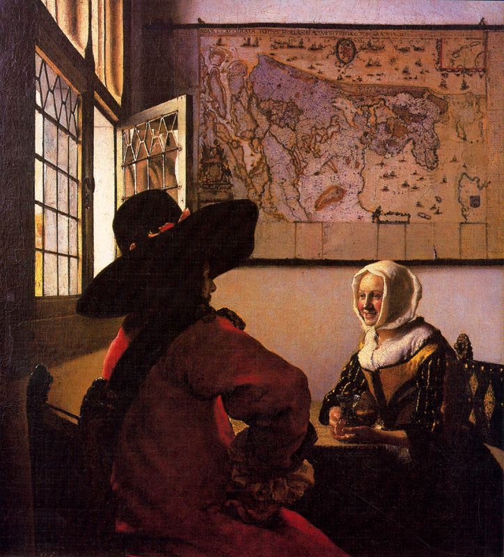 ![]() 1658 | 26 años Calle en Delft Óleo sobre lienzo. Rijksmuseum. Ámsterdam 54.3 x 44 cm. | ![]() 1660 | 28 años Oficial y muchacha sonriendo Óleo sobre lienzo. Colección Frick. Nueva York 50 x 46 cm. |