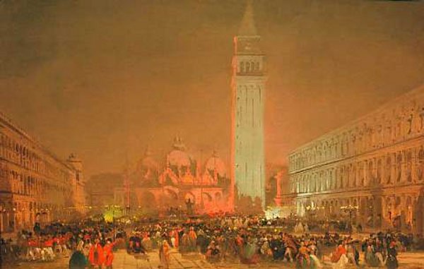 1850 | 41 años Noche de Carnaval en la Plaza de San Marcos Óleo sobre lienzo. Colección particular 33 x 51 cm. |