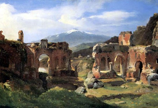 1820 | 24 años Ruinas del Teatro en Taormina Óleo sobre papel. Colección particular 27 x 39 cm.  |