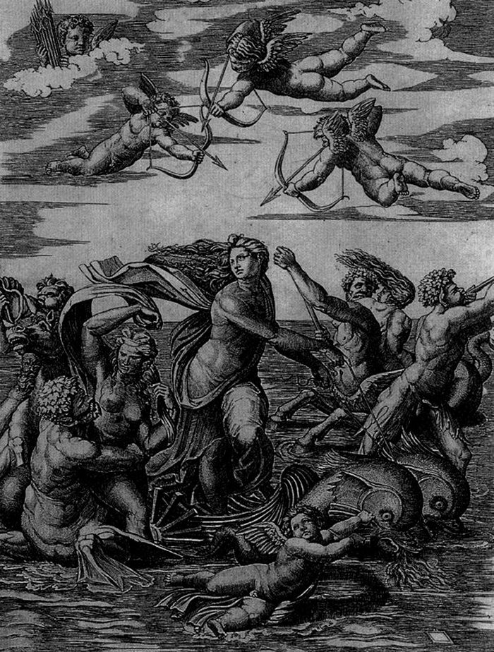 1516 | 36 años El triunfo de Galatea Grabado en cobre. Staatliche Museen. Berlin 39.5 x 28.2 cm. |