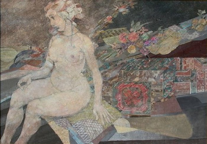 1973 | 40 años Sin título (guiño a Betsabé que se baña con una carta de David por Rembrandt) Óleo sobre tempera y lienzo. Colección particular |