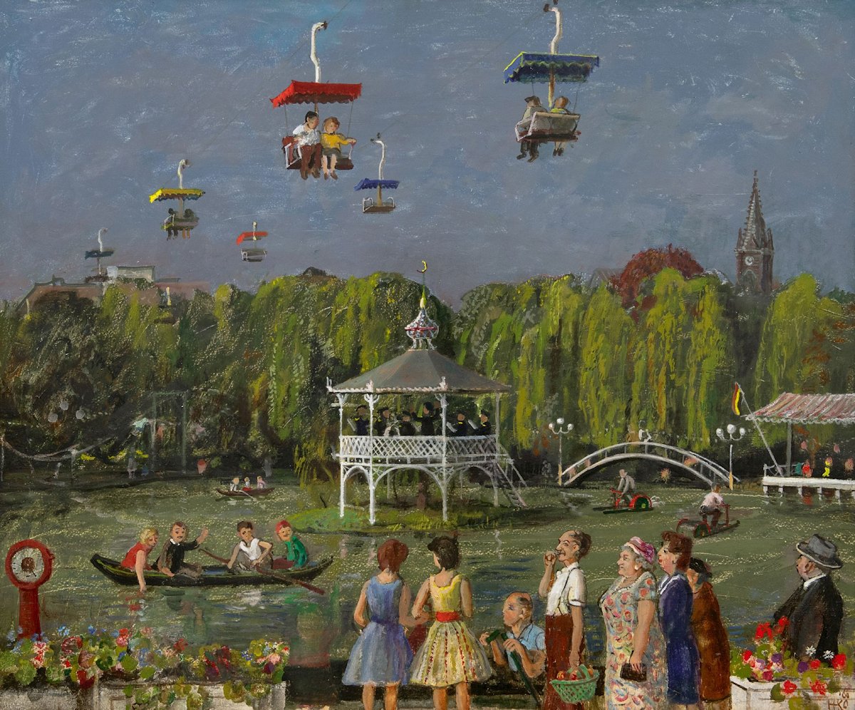 1960 | 67 años Diversión en el teleférico Óleo sobre tabla. Colección particular 49.7 x 59.8 cm. |