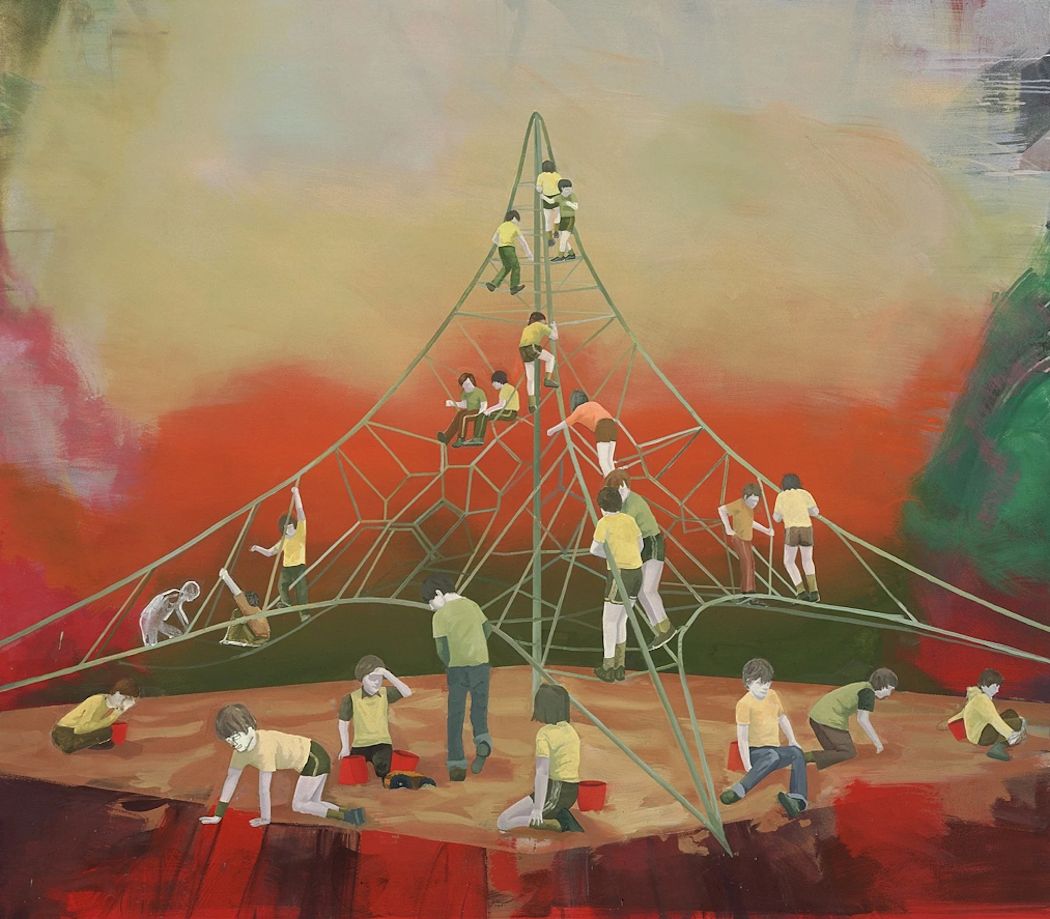 Biografía: Pintor alemán nacido en Múnich. Ha contribuido significativamente al discurso sobre la identidad y la comunidad a través de pinturas, dibujos y collages que exploran las complejidades de la conexión humana. Con fondos que combinan elementos arquitectónicos y paisajísticos, su obra combina una claridad precisa, casi gráfica, con una pincelada fluida y expresiva, creando una tensión entre el orden y el caos. Esto le permite al artista representar dinámicas sociales complejas con una sensibilidad única. Eggerer también explora el potencial político de la interacción dentro del espacio social, con especial interés en las estructuras jerárquicas, el conformismo y la resistencia. El uso que Eggerer hace del color y la forma sirve tanto para revelar como para oscurecer, añadiendo un toque no lógico a sus pinturas puramente figurativas. Sus composiciones juegan con la perspectiva, la superposición y la yuxtaposición de diferentes escalas. Elementos casi diagramáticos coexisten con otros más pictóricos y atmosféricos. Sus figuras poseen una presencia inquietante. Sus rostros suelen estar oscurecidos, realzando los temas de aislamiento y despersonalización. Este enfoque no solo aumenta la complejidad visual de sus pinturas, sino que también refleja su interés por la naturaleza fragmentada de las experiencias sociales contemporáneas. Thomas Eggerer vive y trabaja en Múnich. © Capitain Petzel |