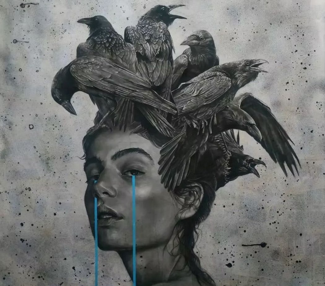 2022 | 32 años Versos malditos Carboncillo sobre lienzo. Colección particular 115 x 120 cm. |