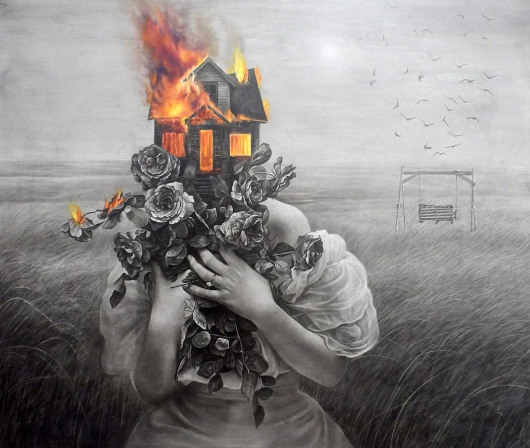 2021 | 31 años Nada es como antes Carboncillo sobre lienzo. Colección particular 87 x 63 cm. |