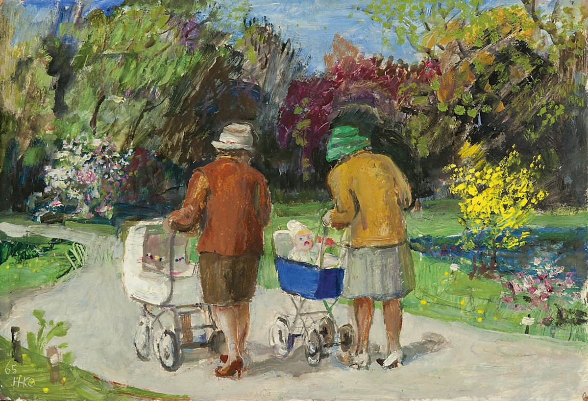 1963 | 70 años Tarde de verano en el parque Óleo sobre lienzo. Colección particular 50.4 x 61.2 cm. |