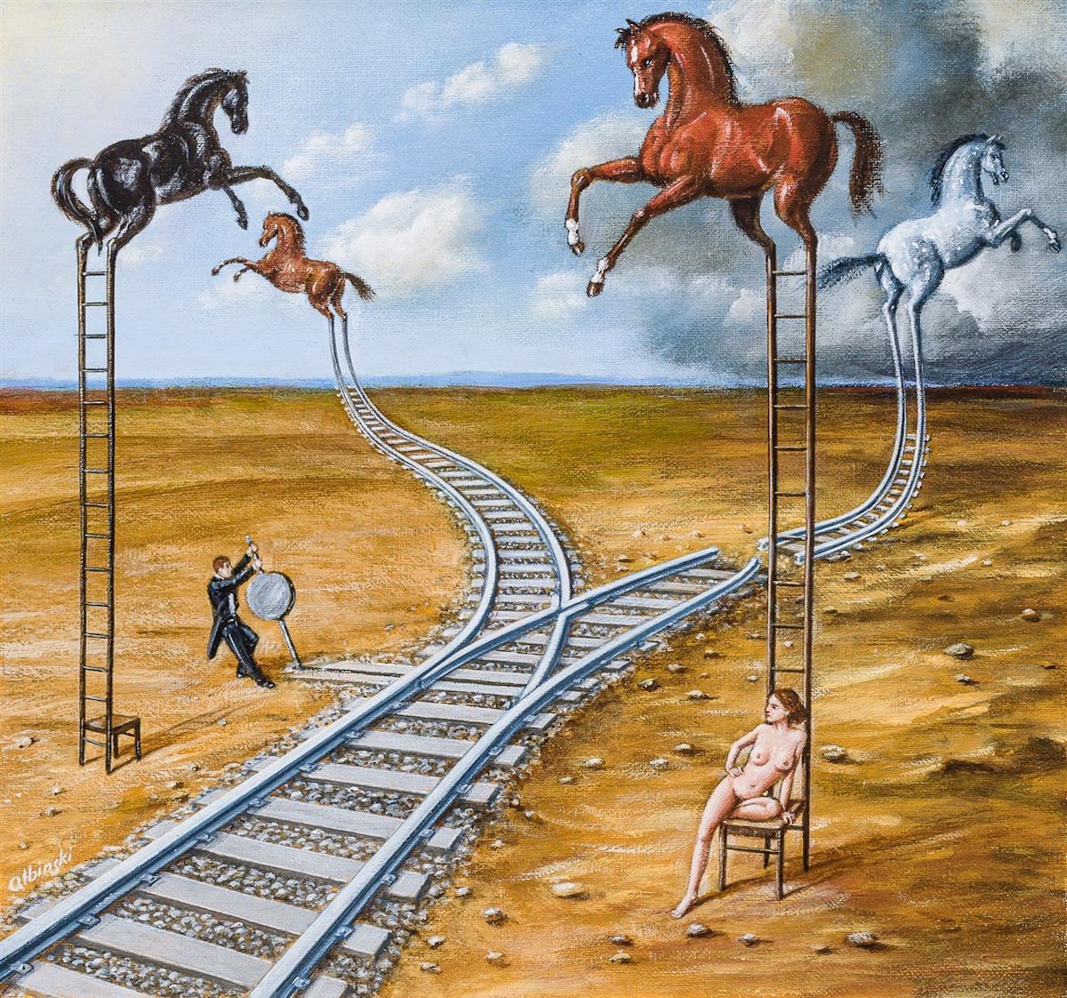 Biografía: Pintor, ilustrador y escultor polaco nacido en Kielce. Se formó en el Departamento de Arquitectura del Colegio Politécnico de Varsovia. En 1982 emigró a los Estados Unidos, donde muy pronto se estableció como un prominente pintor, ilustrador y diseñador. Por su obra ha recibido más de cien importantes premios, incluyendo las medallas de Oro y Plata del Club de Directores de Arte de Nueva York y también las medallas de Oro y Plata de la Sociedad de Ilustradores de Nueva York y Los Ángeles. En 1994 fue galardonado con el Oscar Internacional por El Poster más Memorable del Mundo y el Premio Savignac en París. El mismo año recibió la distinción Revista Creativa a la Mejor Ilustración Británica en Londres. Olbinski ha diseñado las portadas de muchas revistas de primera línea como Newsweek, Time, Business Week, Atlantic Monthly, Playboy, Omni, The New York Times, New Yorker y Der Spiegel, entre otras. Sus obras nos invitan a un mundo de sueño y fantasía. © Cultura Inquieta |