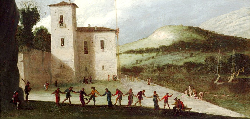 1620 | 42 años Fiestas en la costa (Calendimaggio) Óleo sobre lienzo. Royal Castle. Varsovia 34.5 × 77.3 cm.  |